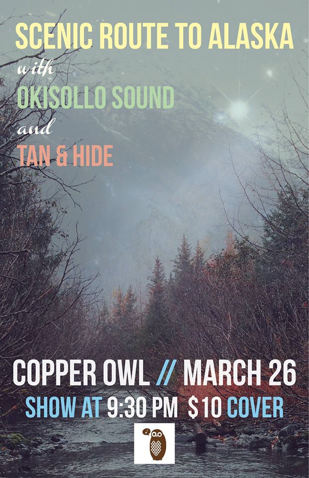 SCENIC ROUTE TO ALASKA with OKISOLLO SOUND and TAN & HIDE at the Copper Owl March 26th