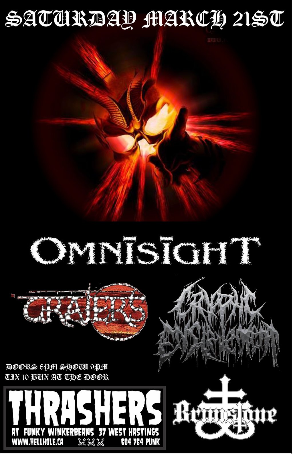 Omnisight, Craters, Cryptic Enslavement, Brimstone @ Funky Winker Beans Mar 21 2015 - Jan 14th @ Funky Winker Beans
