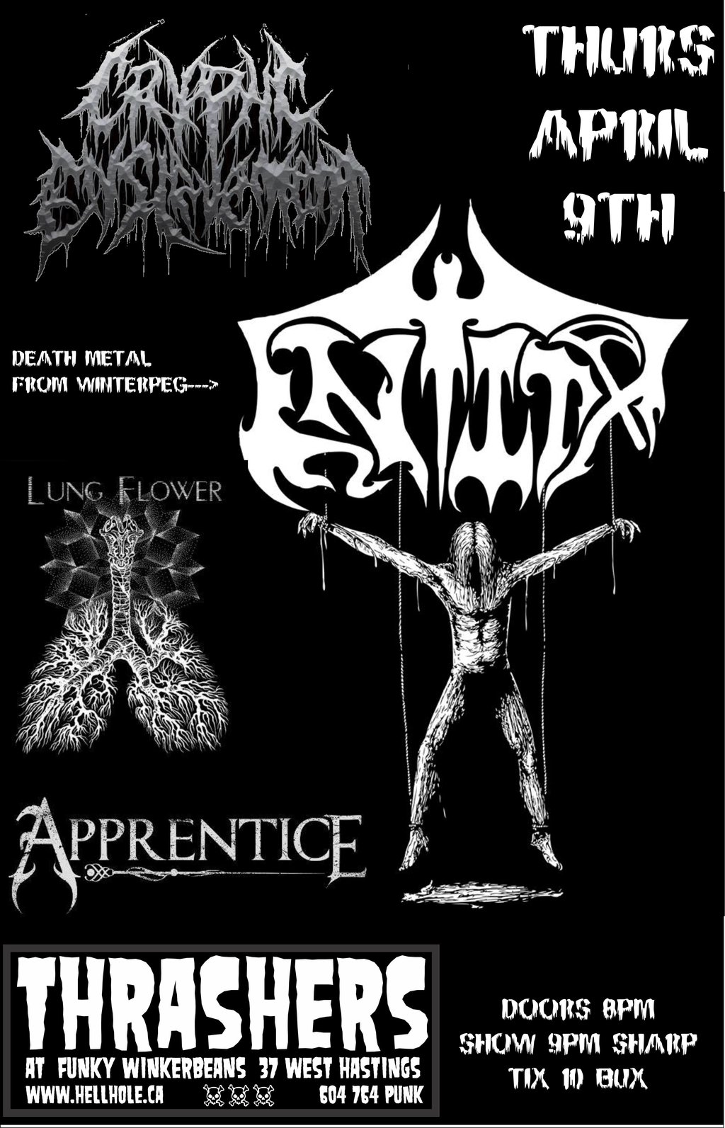 Cryptic Enslavement, Entity, Lungflower, Apprentice @ Funky Winker Beans Dec 31 1969 - Feb 6th @ Funky Winker Beans