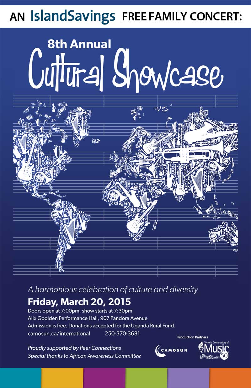 presents the 8th Annual Cultural Showcase Concert, a harmonious celebration created by Camosun College in partnership with the Victoria Conservatory of Music, and featuring unique and exciting musical performances and dances by students of Camosun International, the VCM, the Victoria Society of Chinese Performing Arts, and the Victoria Chinese Culture Club Dancers