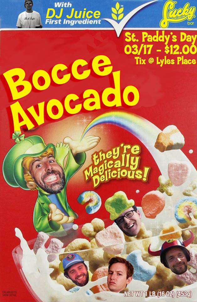 Thats right ! Bocce Avocado is coming to Lucky Bar, Victoria once again for some St. Paddy's day fun! Fresh off of playing a super dope set at Song and Surf , We are primed and ready to rock da house ! As Always JUICE. will be with us spinning some sick beats . Come one come all , wear yo green , guarantee good time . Word Em Up !!!!! Tickets available on Wed at Lyles Place
