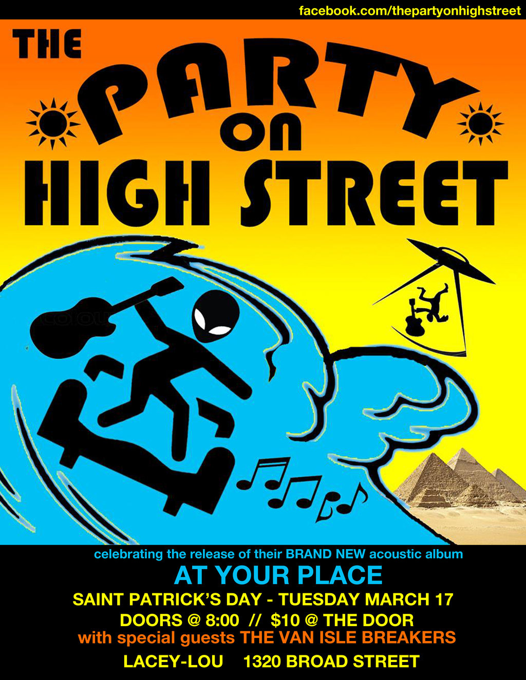 Celebrate St. Patty's Day with the funkiest Party in town! The Party on High Street have been brewing their new acoustic album for some time.....and is finally ready for consumption.