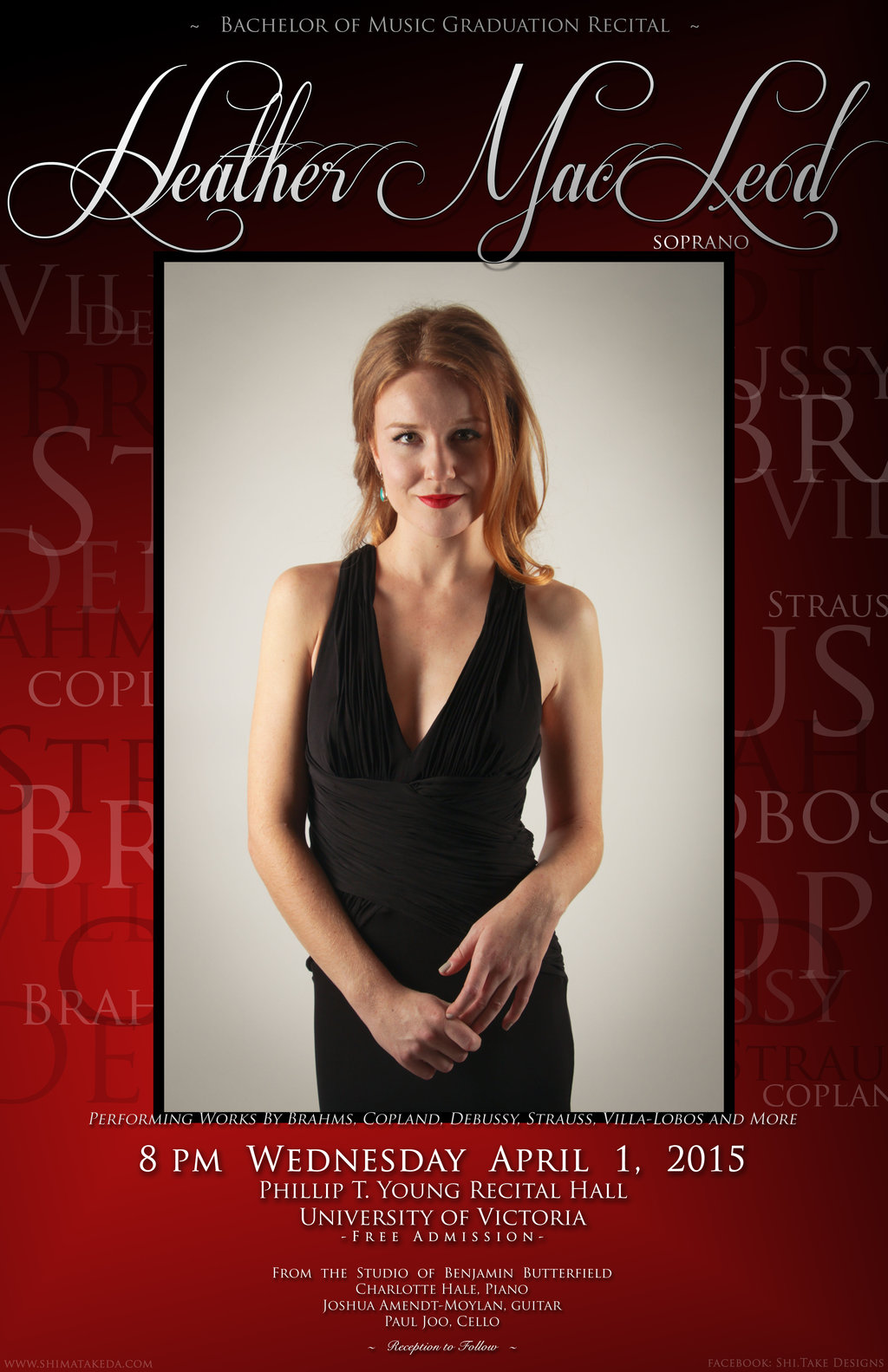 Voice Recital: Heather MacLeod (Soprano), Charlotte Hale (Piano), Joshua Amendt-Moylan  (guitar), Paul Joo  (cello) @ Phillip T. Young Recital Hall (Uvic) Apr 1 2015 - Dec 27th @ Phillip T. Young Recital Hall (Uvic)