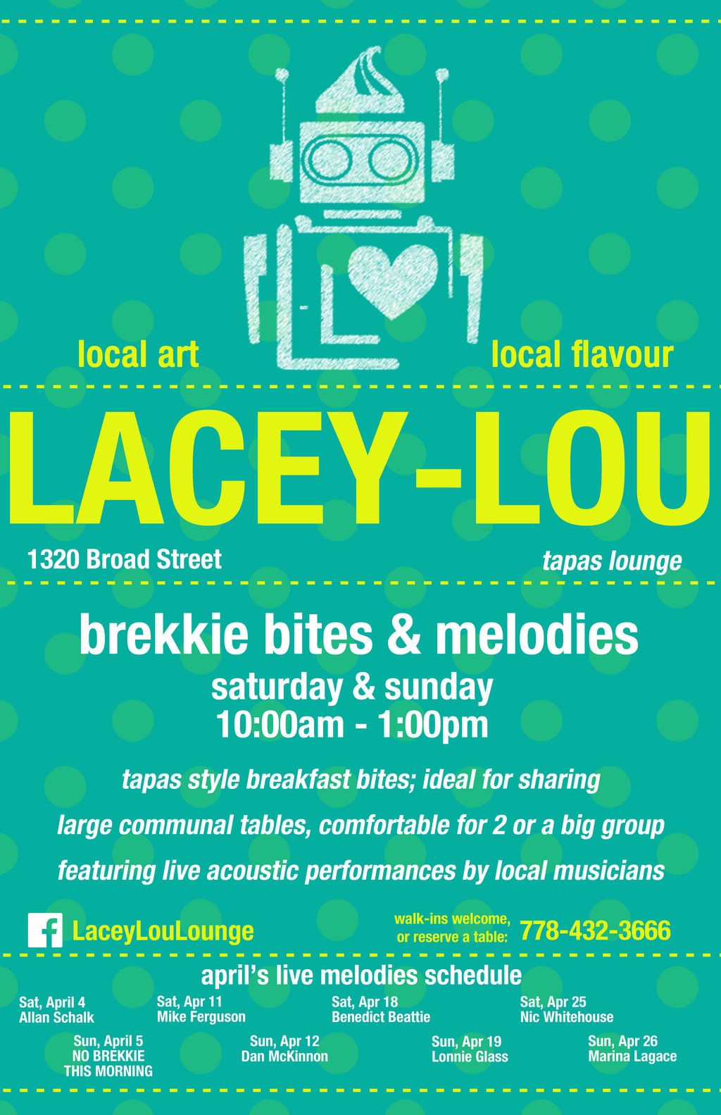 Breakfast at Lacey-Lou includes delicious food, fresh coffee from Level Ground, and Caesars that will clear up that hangover.