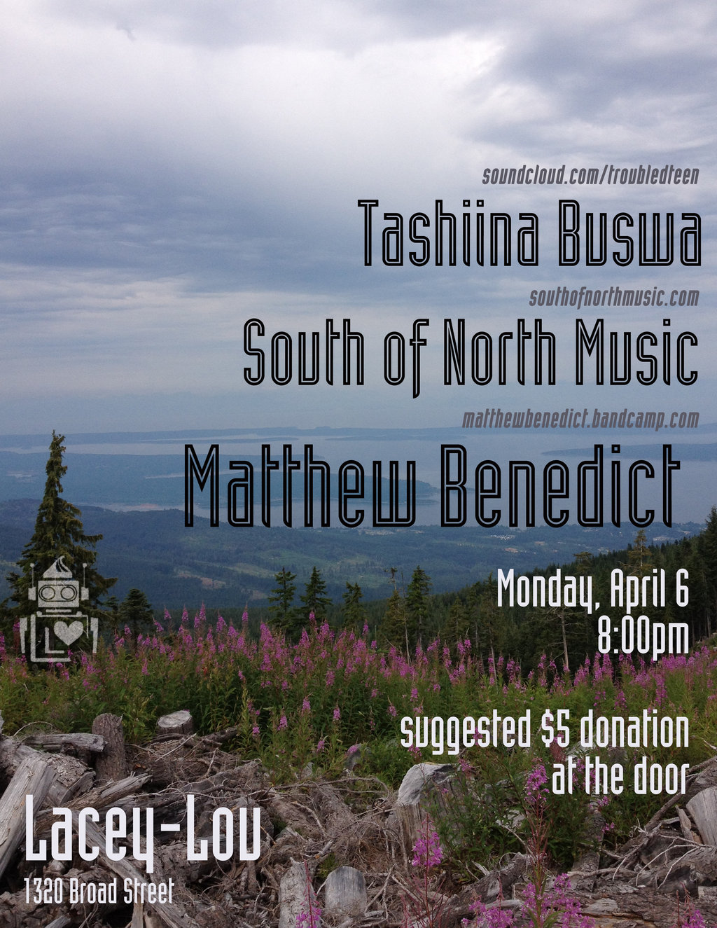 Acoustic Evening!: Matthew Benedict, South of North Music, Tashiina Buswa