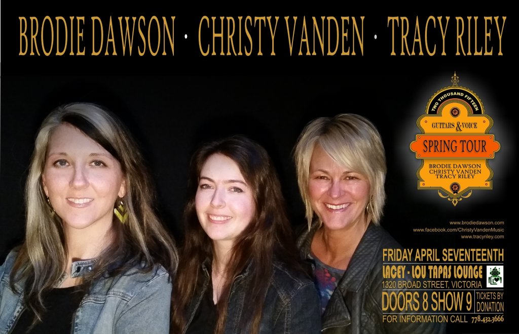 Guitars & Voice! Spring Tour Kick Off!: Brodie dawson, Tracy Riley, Christy Vanden @ Lacey-Lou Tapas Lounge Apr 17 2015 - Feb 23rd @ Lacey-Lou Tapas Lounge