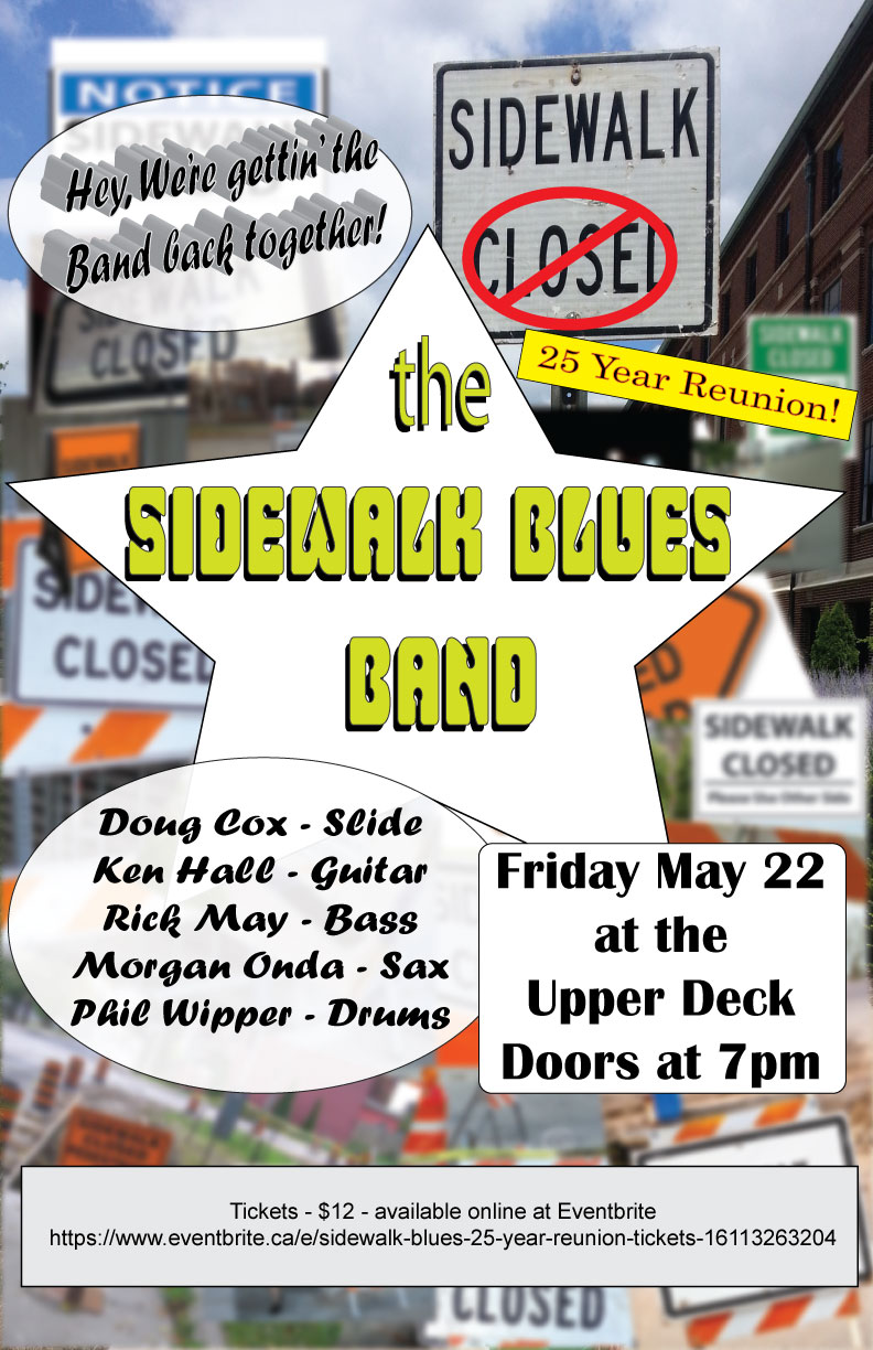 Sidewalk Blues 25 year Reunion: Sidewalk Blues Band @ Upper Deck (in the Gorge Travelodge) May 22 2015 - Jan 14th @ Upper Deck (in the Gorge Travelodge)