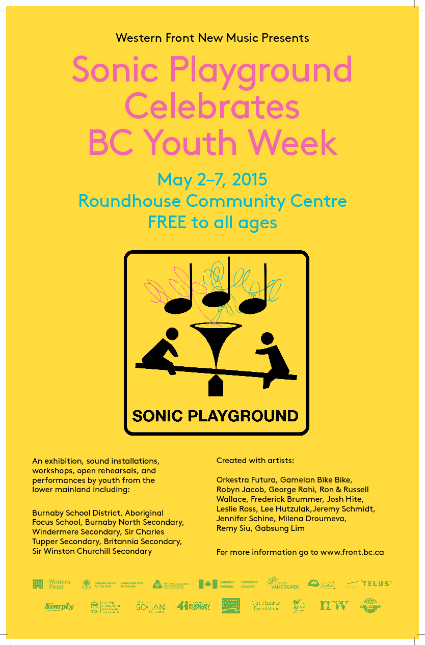 Everyone’s favourite, SONIC PLAYGROUND is back boasting the newest sonic concoctions made by youth from all over the lower mainland with Vancouver’s most interesting musicians and sound artists! This whole-family affair celebrates all kinds of original musical projects –from traditional Gamelan music to live sampling- with an exhibition, sound installations, workshops, open rehearsals and performances. Warning: will contain extreme creativity and original thought.