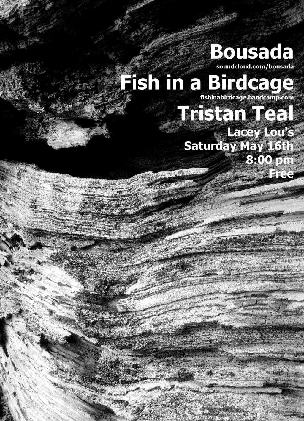 BOUSADA, Fish in a Birdcage, Tristan Teal @ Lacey-Lou Tapas Lounge May 16 2015 - Jan 19th @ Lacey-Lou Tapas Lounge