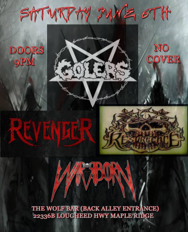 The Golers, Revenger, Resurgence, Warrborn @ The Wolf Bar Jun 6 2015 - Feb 25th @ The Wolf Bar