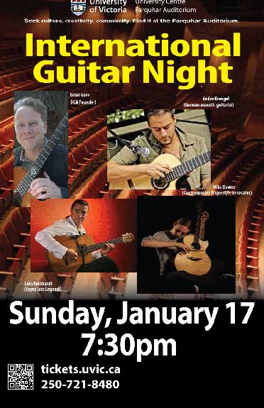 The world’s foremost acoustic guitarists are brought together by IGN founder Brian Gore to perform their latest original compositions and exchange musical ideas in a public concert setting. This special evening of solos, duets and quartets highlights the virtuosity and diversity within the world of acoustic guitar. This year, Brian will be joined by three of Europe’s finest acoustic guitarists: Gypsy Jazz legend, Lulo Reinhardt, contemporary fingerstyle innovator Mike Dawes and multi-genre showman Andre Krengel.