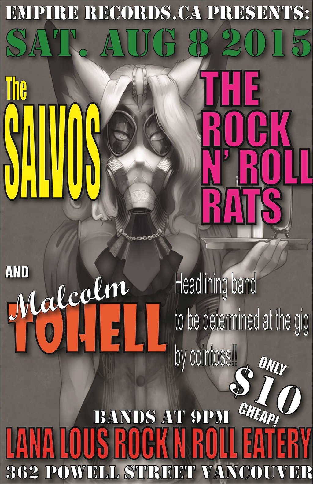 EMPIRE RECORDS OF CANADA PRESENTS:THE SALVOS / ROCK N ROLL RATS / MACOLM TOHELL ALL PUNK PSYCHO GIG AT LANA LOUS!