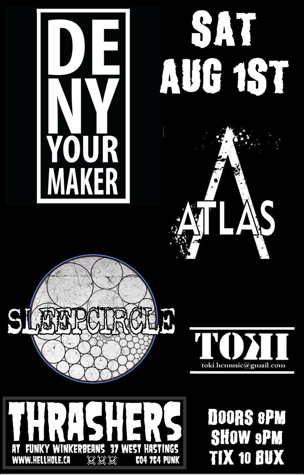 deny your maker, Atlas, Sleepcircle, TOKI @ Funky Winker Beans Aug 1 2015 - Dec 27th @ Funky Winker Beans