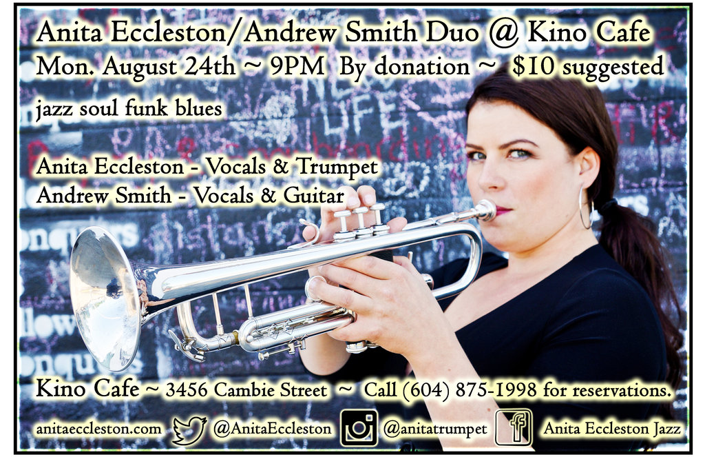 Anita Eccleston/Andrew Smith Duo @ Kino Cafe August 24th 9pm By Donation (sug. $10)