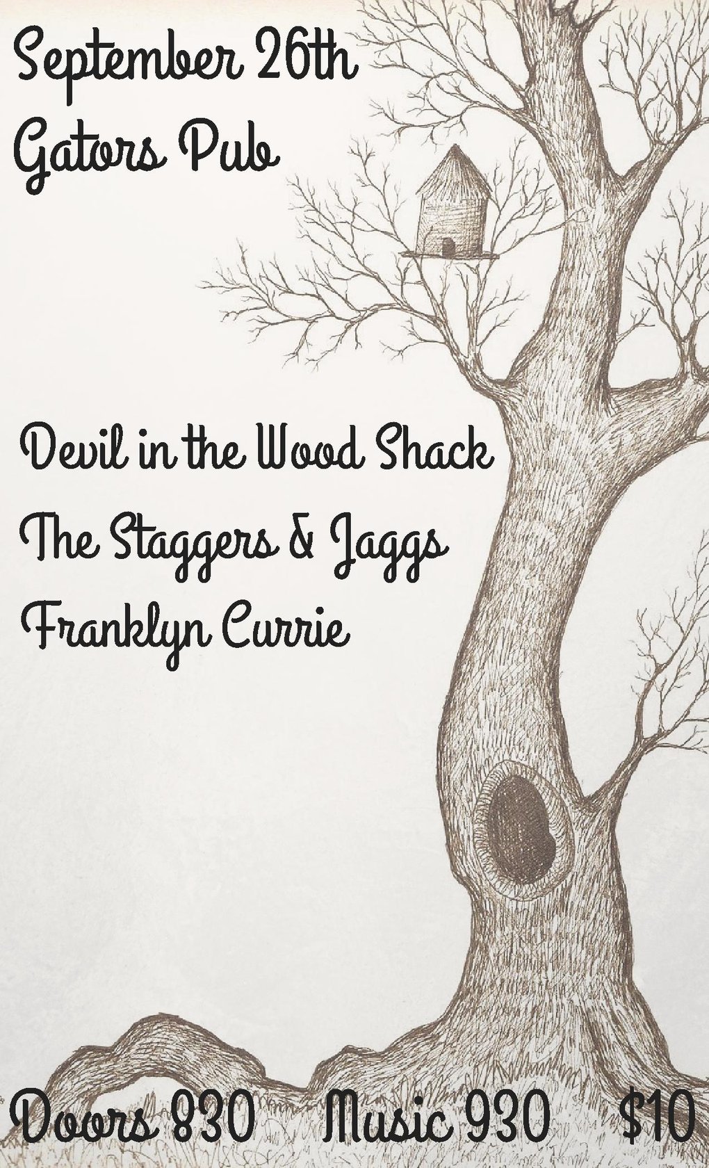 Devil in the Woodshack, Staggers & Jaggs, Franklyn Currie @ Gator's Pub Sep 26 2015 - Jan 13th @ Gator's Pub