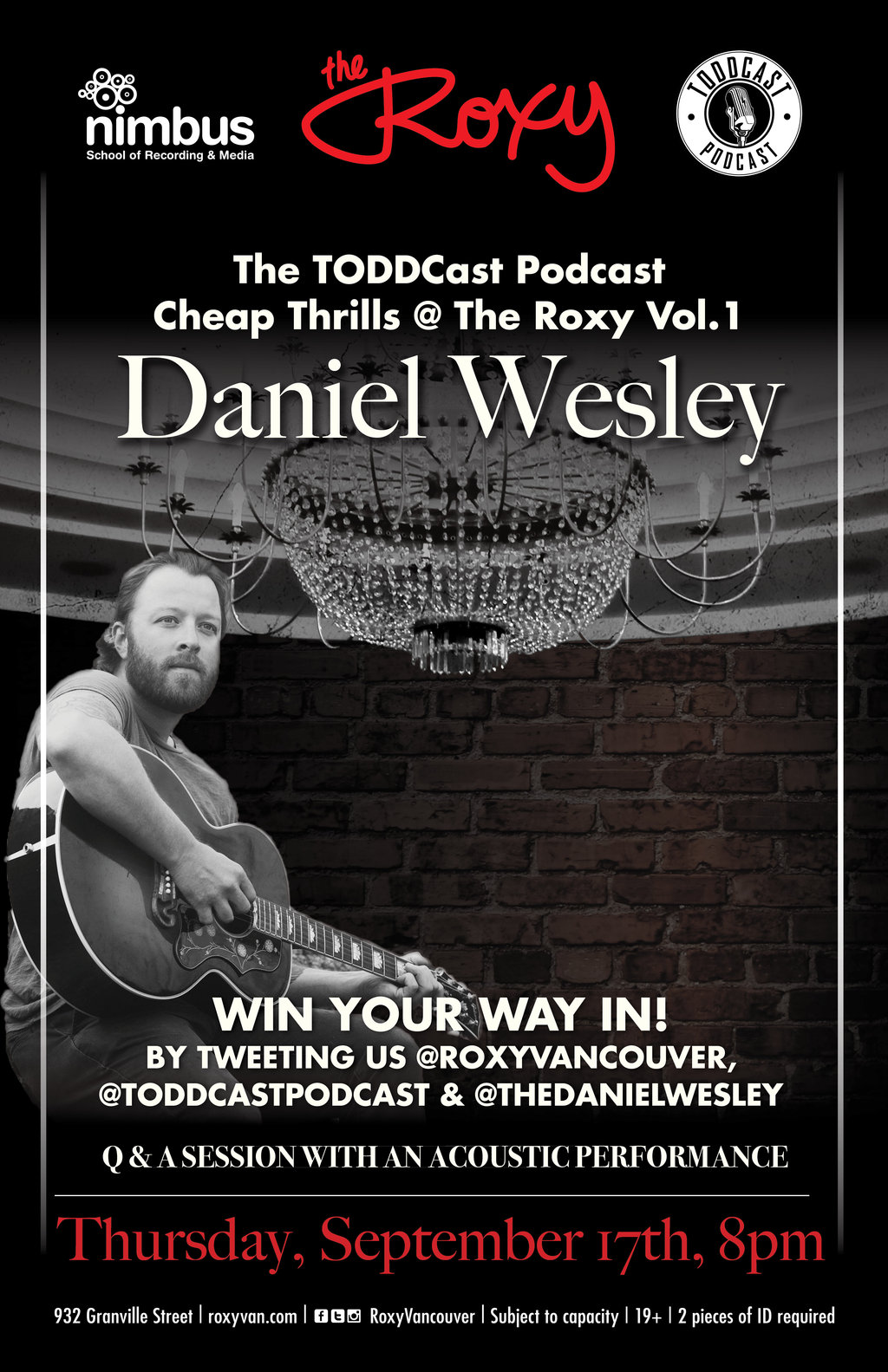 Win your way in by tweeting us @roxyvancouver, @toddcastpodcast & @thedanielwesley!