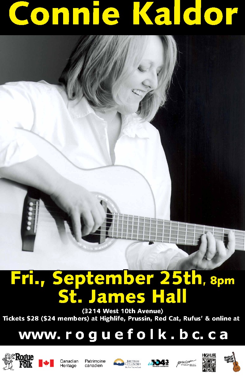 Connie Kaldor writes this and more about the unexpected twists and turns of life and love. She could well be writing about her personal artistic complexities. Music pundits have tried to define the essence of the prairie-born acoustic performer for over two decades, but even the most eloquent have fallen short of perfection. Fact is, Connie Kaldor is a performer without borders. A contradiction in terms. She is a Juno Award-winning singer who has flourished on the folk music scene for over two decades, yet her repertoire of original material blurs musical boundaries, embracing elements of gospel, rock, country and western, folk, blue grass and adult contemporary.