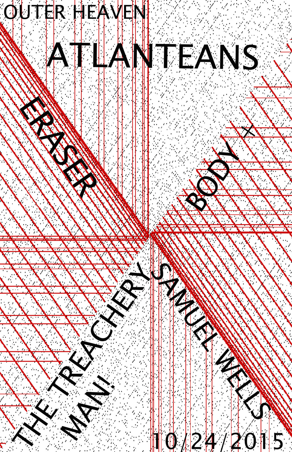 Atlanteans, The Treachery Man!!, Eraser, Body +, Samuel Wells @ Outer Heaven Oct 24 2015 - Mar 13th @ Outer Heaven