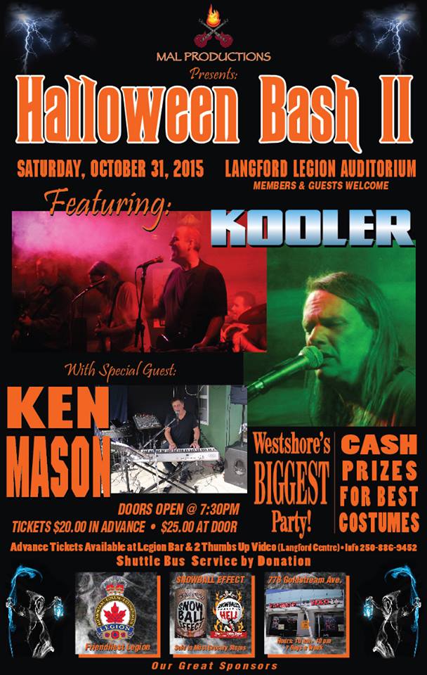 Halloween Bash: Ken Mason, Kooler @ Langford Legion (Prince Edward) Oct 31 2015 - Feb 21st @ Langford Legion (Prince Edward)