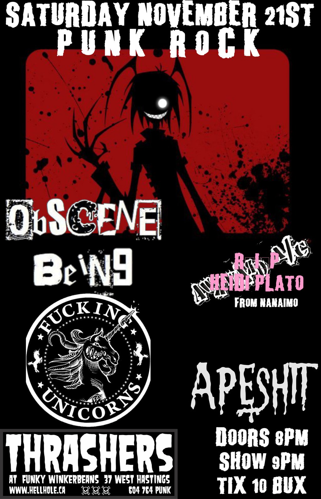 Obscene Being, Fucking Unicorns, Apeshit @ Funky Winker Beans Nov 21 2015 - Feb 24th @ Funky Winker Beans