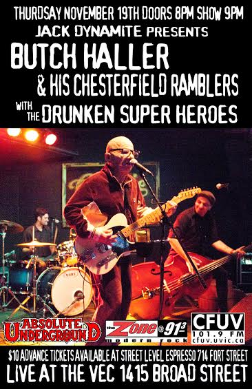 Butch Haller the inventor of the most successful rock and roll song: Butch Haller and The Chesterfiel Ramblers, Drunken Super Heroes @ Victoria Event Centre Nov 19 2015 - Nov 25th @ Victoria Event Centre