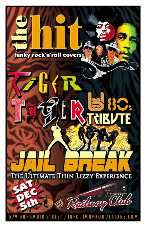 . Saturday, December 5th IMU presents The HIT, TIGER TIGER 80s Tribute, JAILBREAK Thin Lizzy Tribute & guests @ The Railway Club, 579 Dunsmuir . Show 9pm / $10 cover