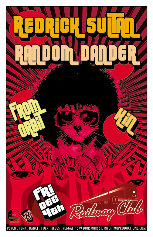 . Friday, December 4th IMU presents REDRICK SULTAN, RANDOM DANDER, FROM ORBIT & KIN @ The Railway Club, 579 Dunsmuir . Show 9:30pm / $10 cover