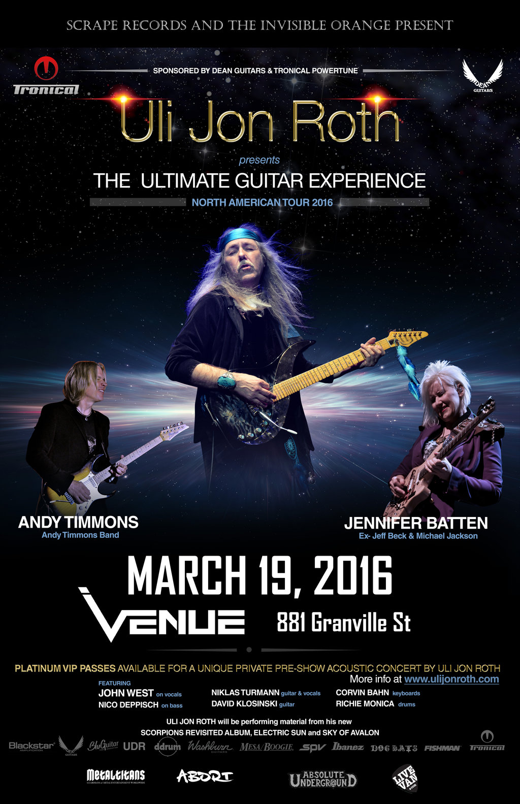 Ultimate Guitar Experience: Uli Jon Roth, Jennifer Batten, Andy Timmons @ Venue Dec 31 1969 - Jan 16th @ Venue