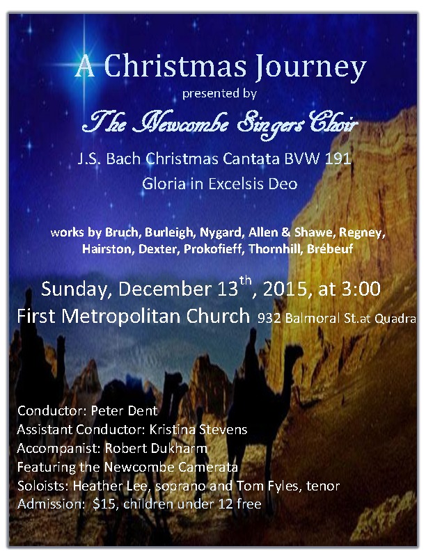 “A Glorious Christmas Journey”: Newcombe Singers, Newcombe Camerata Orchestra @ United Commons (First Metropolitan United Church) Dec 13 2015 - Jan 15th @ United Commons (First Metropolitan United Church)