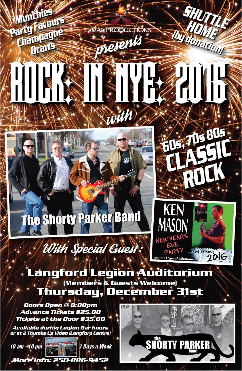 New Years Eve 2016: The Shorty Parker Band, Ken Mason @ Langford Legion (Prince Edward) Dec 31 2015 - Jan 14th @ Langford Legion (Prince Edward)