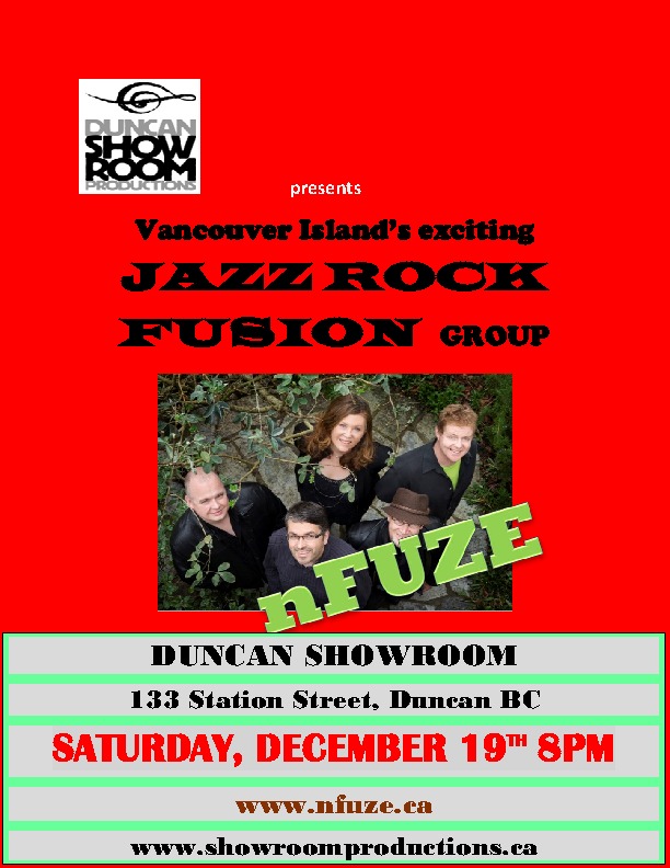 Vancouver's exciting Jazz Rock Fusion group nFuze performs exciting original pieces and interpretations of compositions by Pat Metheny Group and Billy Cobham. nFuze has been together for two years, and has performed at the 2015 TD International Jazz Festival in Victoria, and has available a self-released CD. nFuze consists of Andy Okell on drums, Sheldon Bordal on bass, Dean Wolfe on guitar and Dee Cooper on keyboards. Special guests are expected to appear on the night; it should be a fun evening.