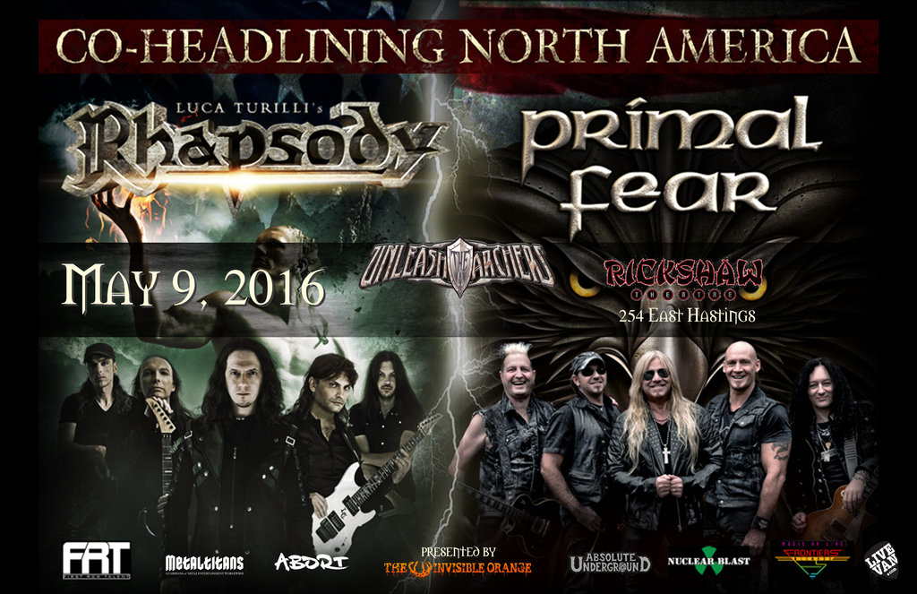 Rhapsody, Primal Fear, Unleash The Archers @ Rickshaw Theatre May 9 2016 - Jan 14th @ Rickshaw Theatre