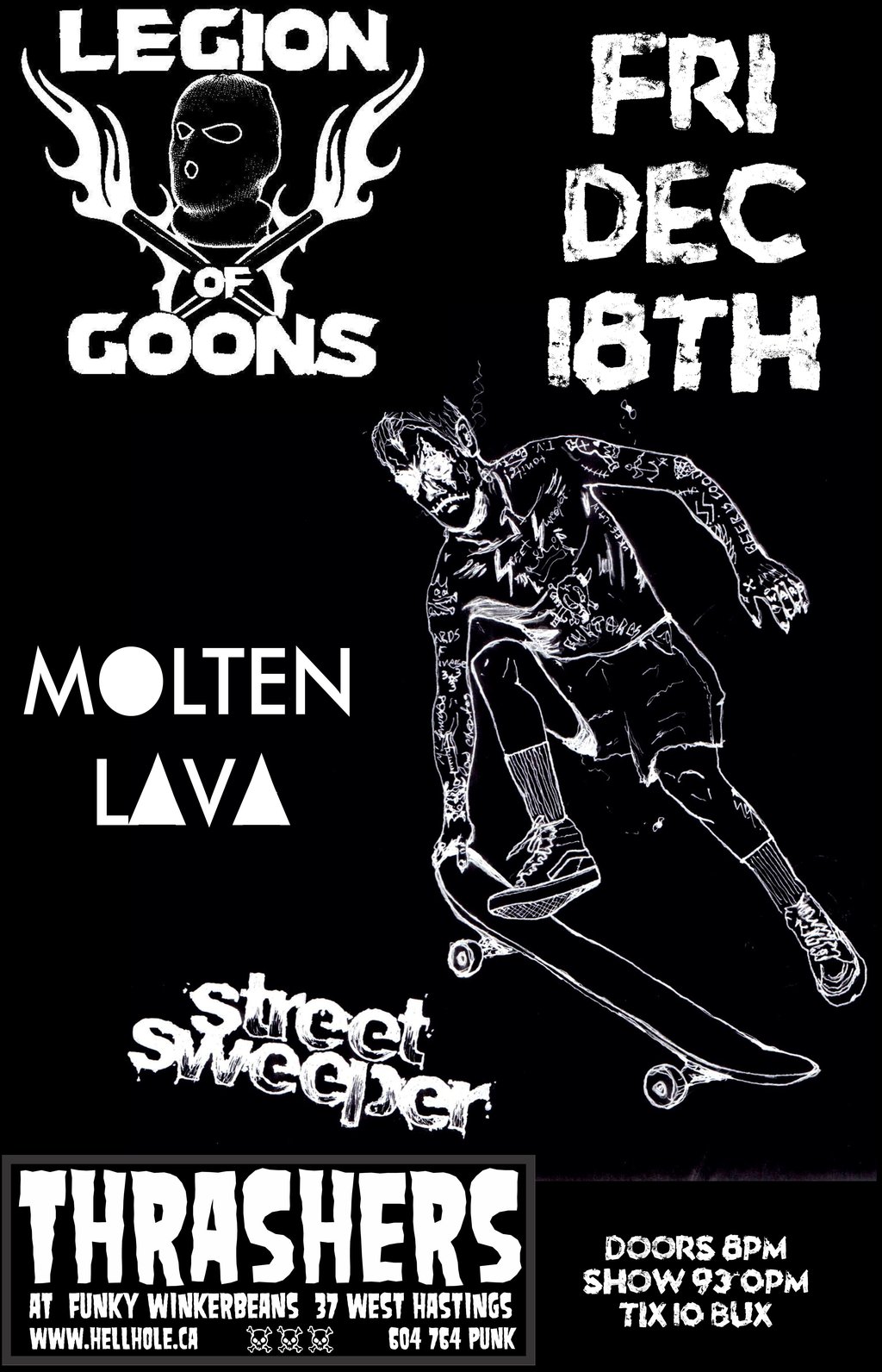 PUNKS WITH SK8BOARDS ~: Legion of Goons, Molten Lava, Street Sweeper @ Funky Winker Beans Dec 18 2015 - Feb 4th @ Funky Winker Beans