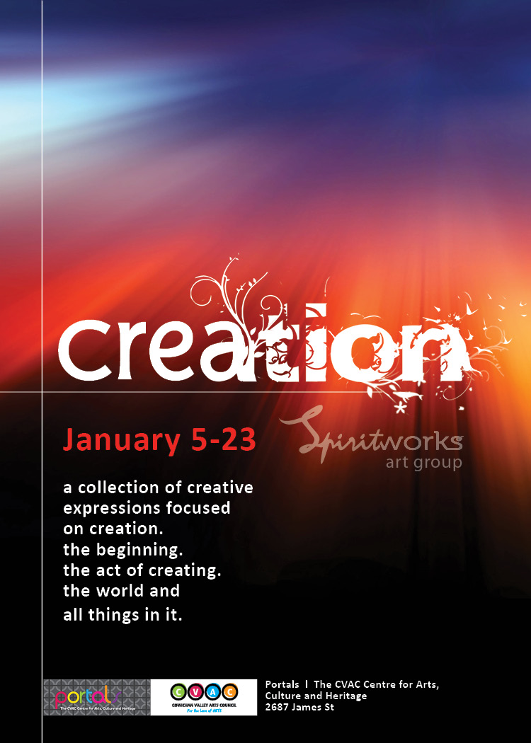 Kicking off the New Year in PORTALS is a group exhibition by the artists from the Spritworks Group. "Creation" is a collection of creative expressions focused on creation, the beginning, the act of creating, the world and all things in it. For more info 250-746-1633