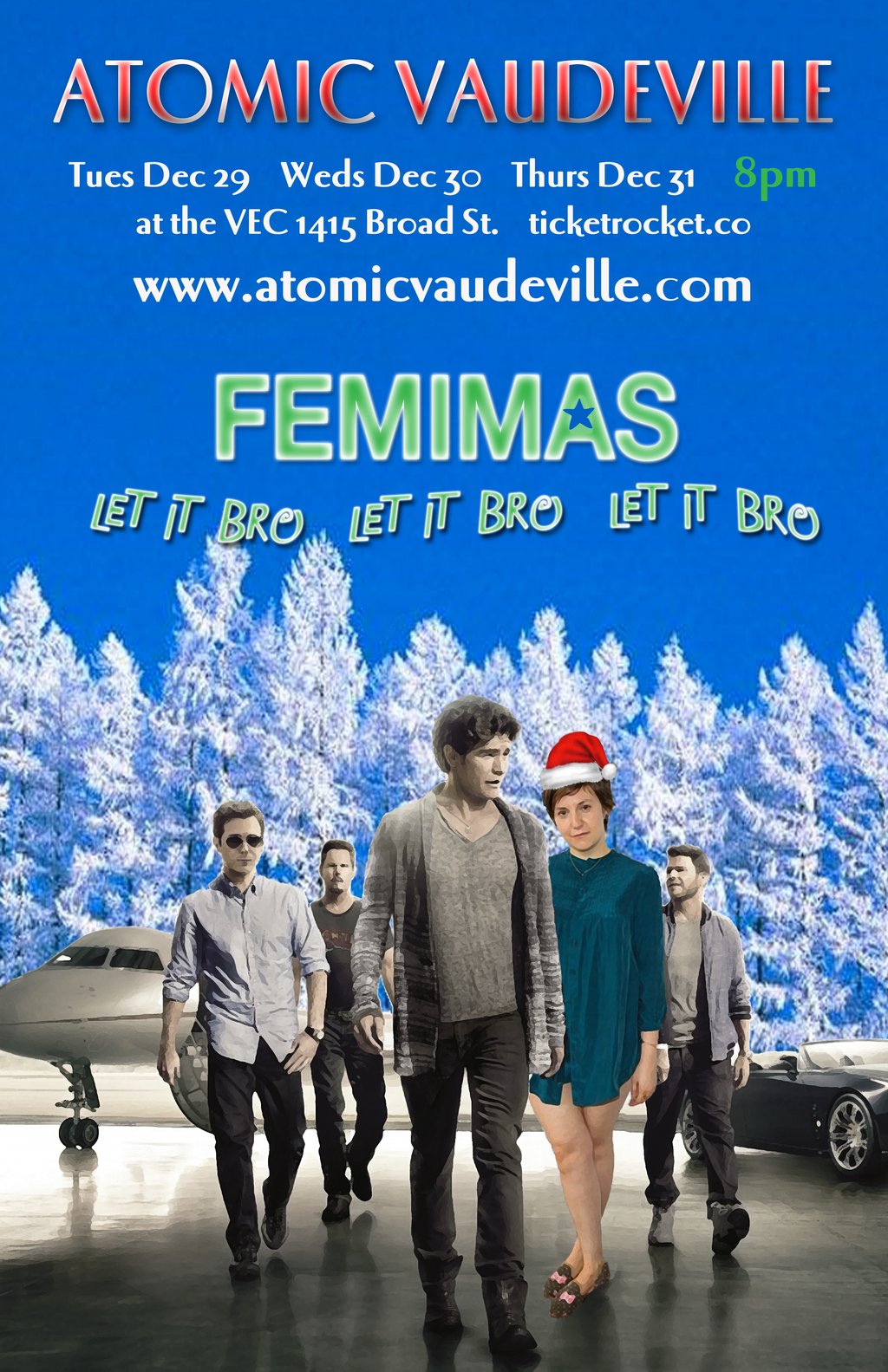 Come ring in the new year in style with AV. "Femimas: Let it Bro, Let it Bro, Let it Bro..." will feature a look back at 2015, block-rockin' bro choreography, insightful feminist theory from Skeletor, holiday cheer, and the heartbreak of the societal disease known as Jazz. Basically it's like the upcoming Star Wars film, except with singing and dancing.