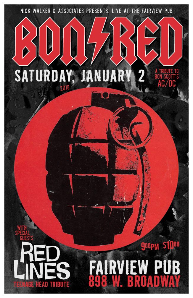 Bon Red (tribute to Bon Scott's AC/DC) & Red Lines (Teenage Head tribute) perform a post-New Years "hair of the dog" show at Fairview Pub. The perfect cure for a New Years hangover is fast, loud music and another hangover!