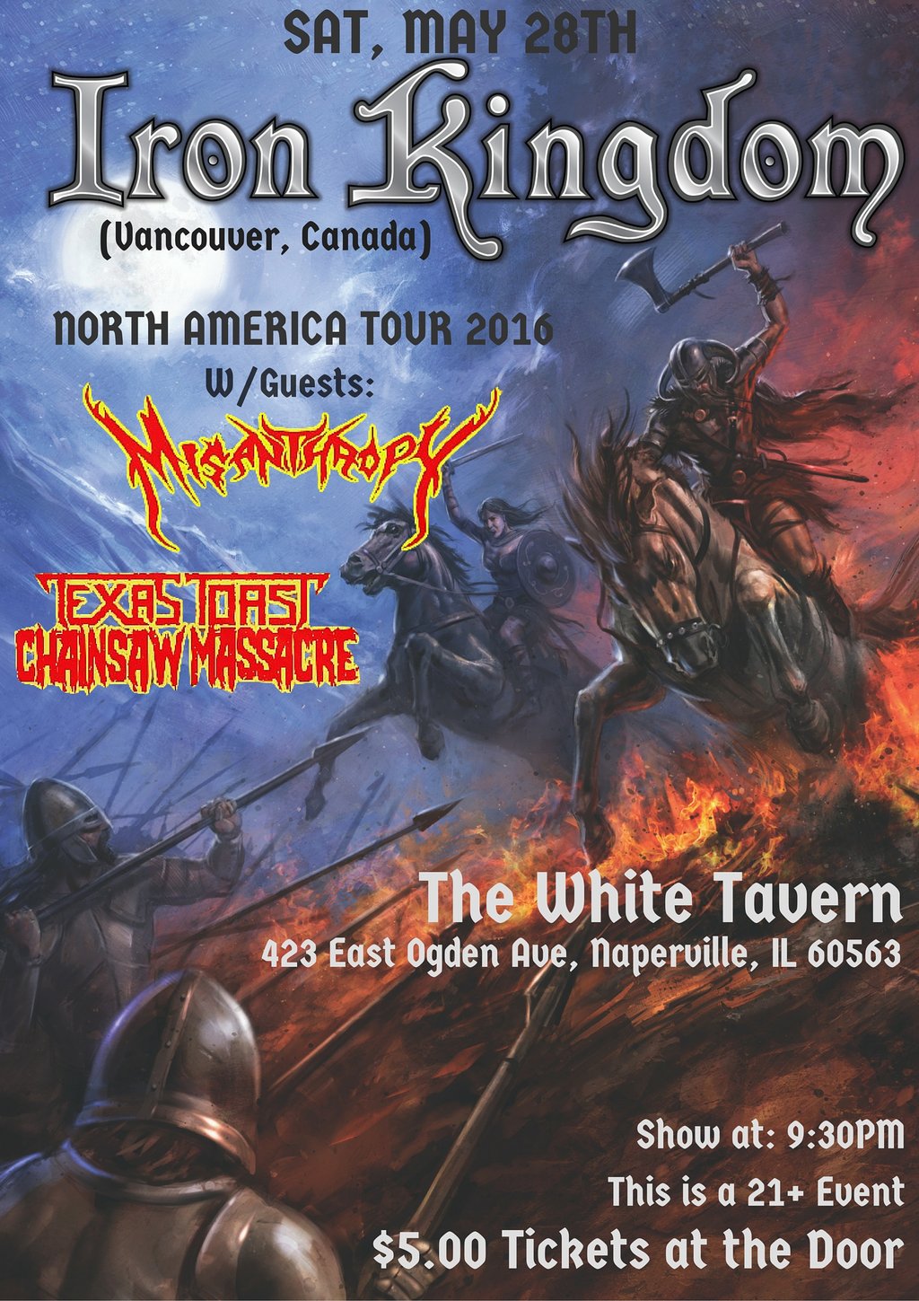 Iron Kingdom, Misanthropy, Texas Toast Chainsaw Massacre @ The White Tavern May 28 2016 - Dec 25th @ The White Tavern