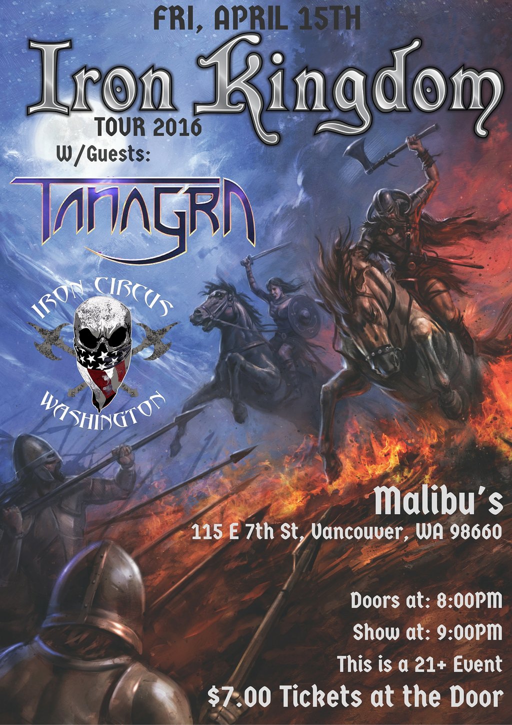 Tanagra, Iron Kingdom, Iron Circus @ Malibu's Apr 15 2016 - Feb 24th @ Malibu's