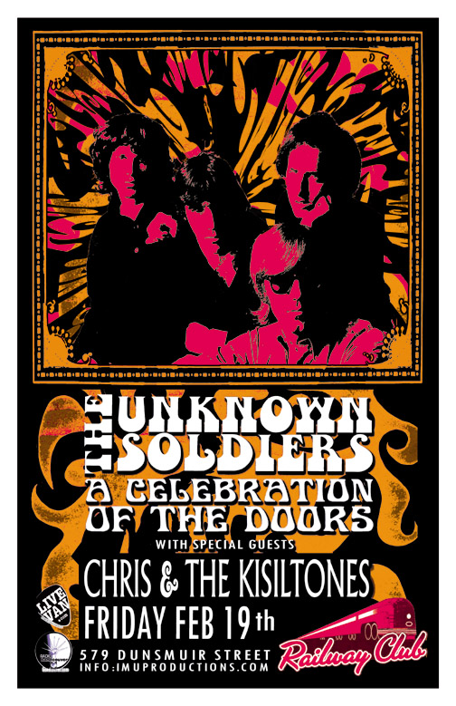. Friday, February 19th IMU presents The UNKNOWN SOLDIERS A Celebration Of The Doors w/ CHRIS & THE KISILTONES + The 3 A.M. @ The Railway Club, 579 Dunsmuir . Show 9:30pm / $10 cover