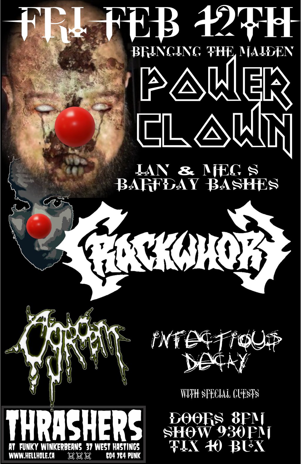 Power Clown, Crackwhore, Ogroem, Infectious Decay @ Funky Winker Beans Feb 12 2016 - Jan 14th @ Funky Winker Beans