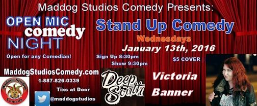 STAND UP COMEDY AT DEEP SOUTH BBQ - OPEN MIC SHOW HOSTED BY VICTORIA BANNER - BROUGHT TO YOU BY MADDOG STUDIOS!