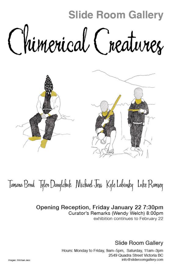 Chimerical Creatures: Tamara Bond, Tyler Danylchuk, Michael Jess, Kyle Labinsky, Luke Ramsey @ Slide Room Gallery Jan 22 2016 - Feb 24th @ Slide Room Gallery
