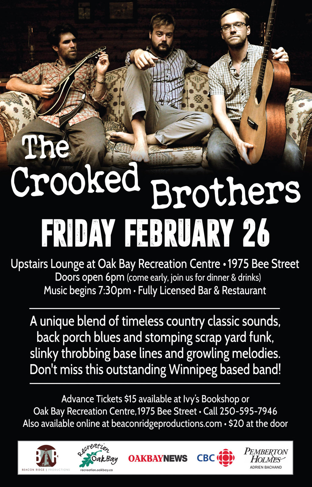 The Crooked Brothers have performed to sold-out rooms at festivals overseas such as Brighton’s Great Escape, and Willisau, Switzerland’s Spring Bluegrass Festival. They have toured 10 countries, played in nearly every province and territory in Canada, and have released three full length albums, as well as an EP that comes available exclusively on limited-edition postcards.