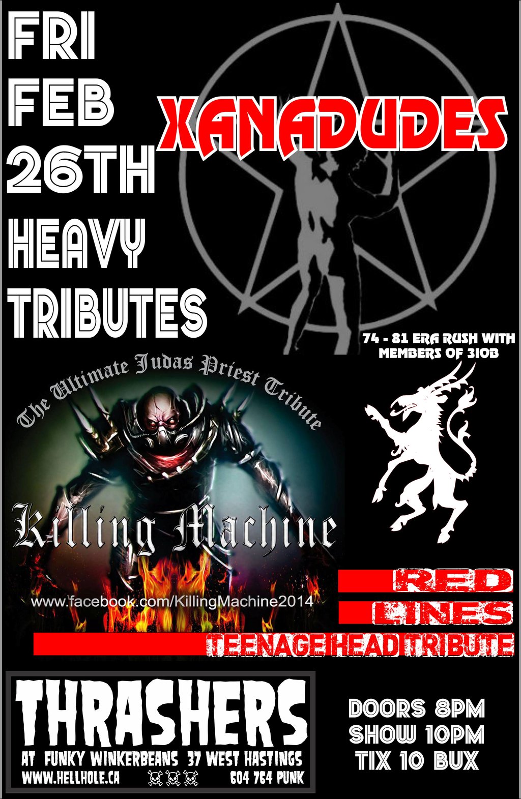 HEAVY TRIBUTES~~: Xanadudes  , Killing Machine (JUDAS PRIEST), Red Lines @ Funky Winker Beans Feb 26 2016 - Jan 14th @ Funky Winker Beans