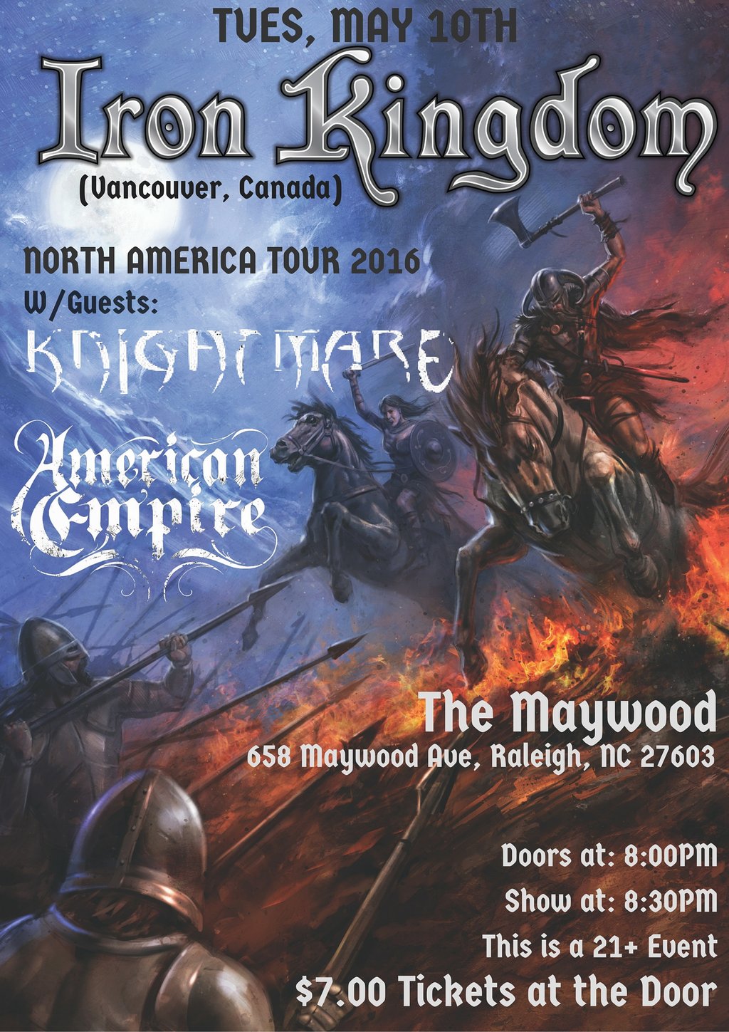 Iron Kingdom live in Raleigh, NC! W/Guests: Knightmare American Empire T...