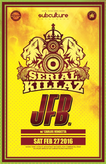 SUBculture Saturday's Feat: SERIAL KILLAZ, JFB, Carlos Vendetta, RRKADE