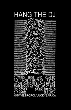 Death to mediocrity! Death to Top 40! Hang the DJ is Vic's newest weekly club night, featuring: Alternative, Indie, Brit Pop, Retro, New Wave, Post-Punk, Etcetera... with DJs Catscan and Longshanks.
