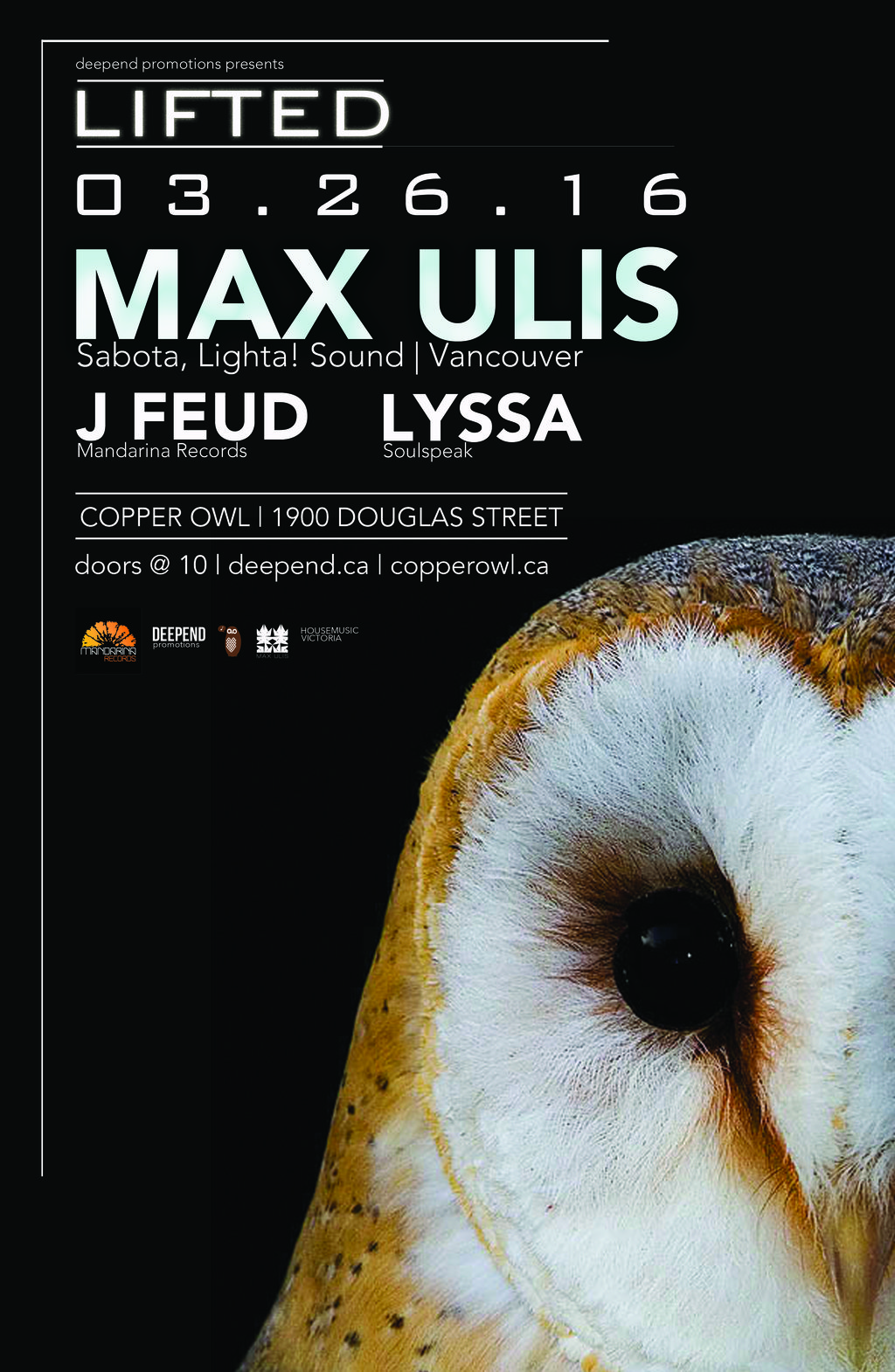 Join us Saturday March 26th for Lifted at the Copper Owl, an intimate evening of qaulity dance music from the past and present. This month we have Max Ulis, a staple at Bass Coast Festival and half of Sabota.