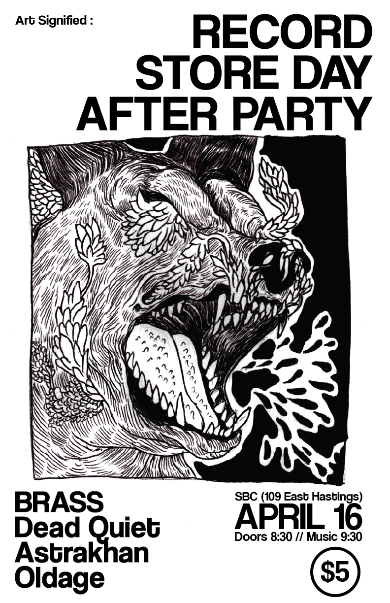 RECORD STORE DAY AFTER PARTY: Brass, Dead Quiet, Astrakhan, Oldage @ SBC Restaurant Apr 16 2016 - Feb 27th @ SBC Restaurant