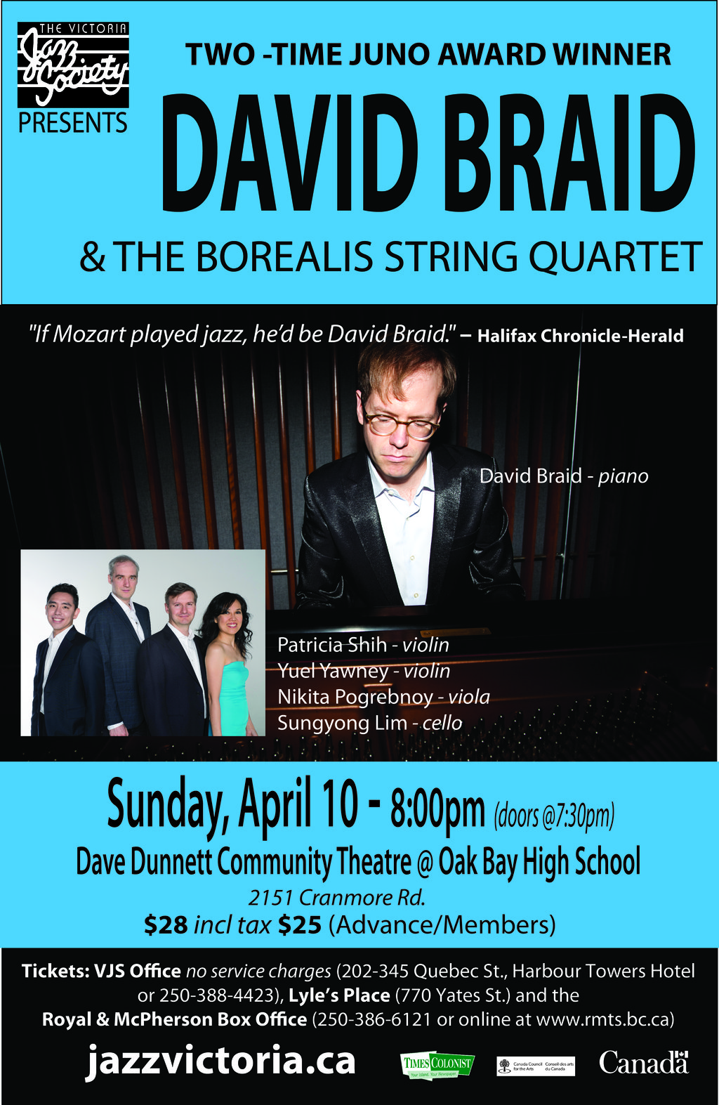 David Braid & The Borealis String Quartet: David Braid & The Borealis String Quartet @ Oak Bay High Theatre Apr 10 2016 - Feb 8th @ Oak Bay High Theatre